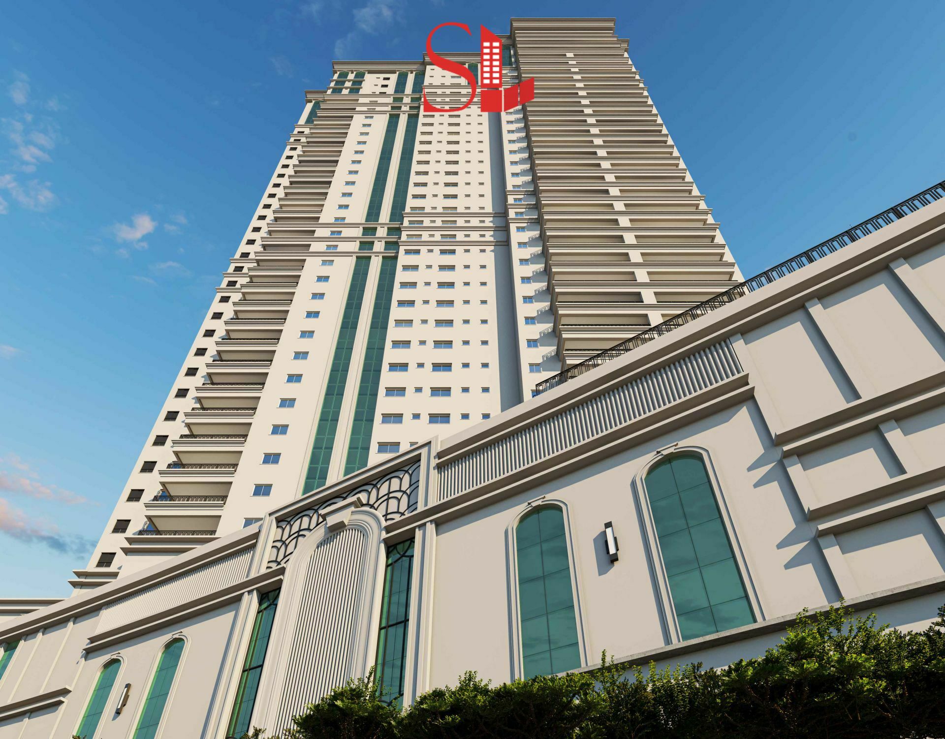 Espera para climatização nas suítes, living e sacada com sistema do tipo Split, com laje técnica projetada de forma a receber equipamentos de porte, em quantidades adequadas, sem interferir na estética da fachada;