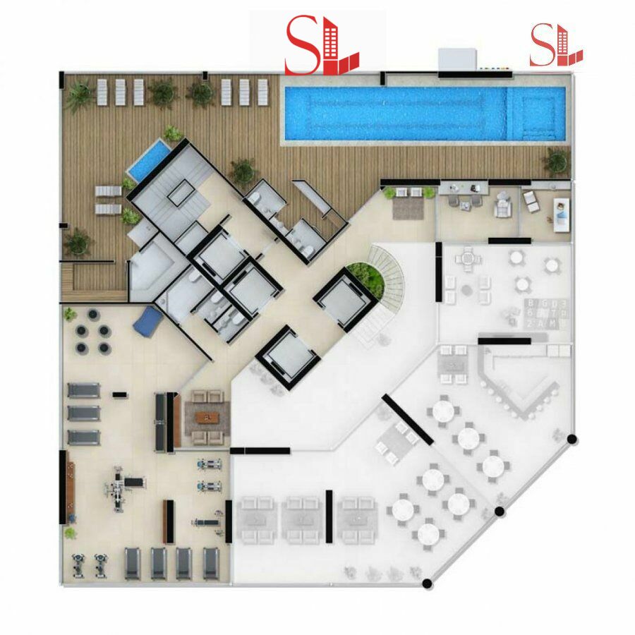 4 elevadores (sendo 2 sociais, 1 de serviço e 1 de segurança)
