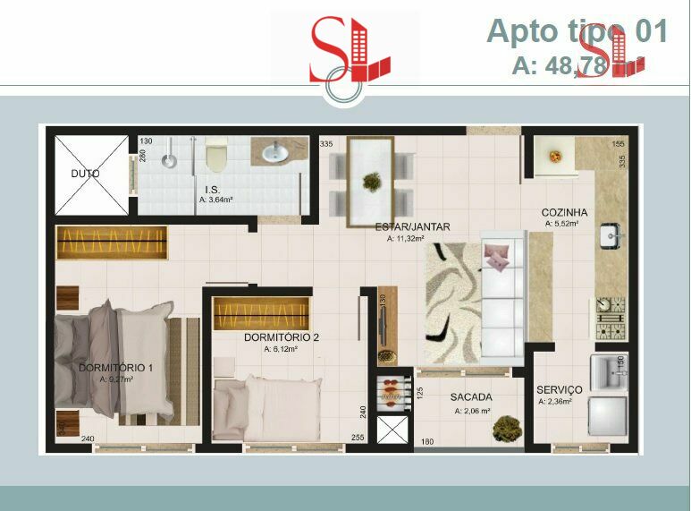 Área Privativa48,78m²